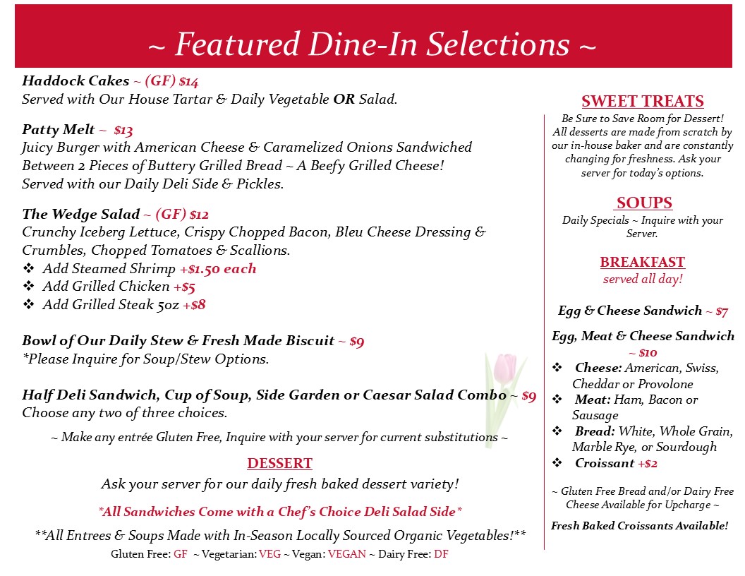 Check out our Featured Dine in and Grab & Go Menus